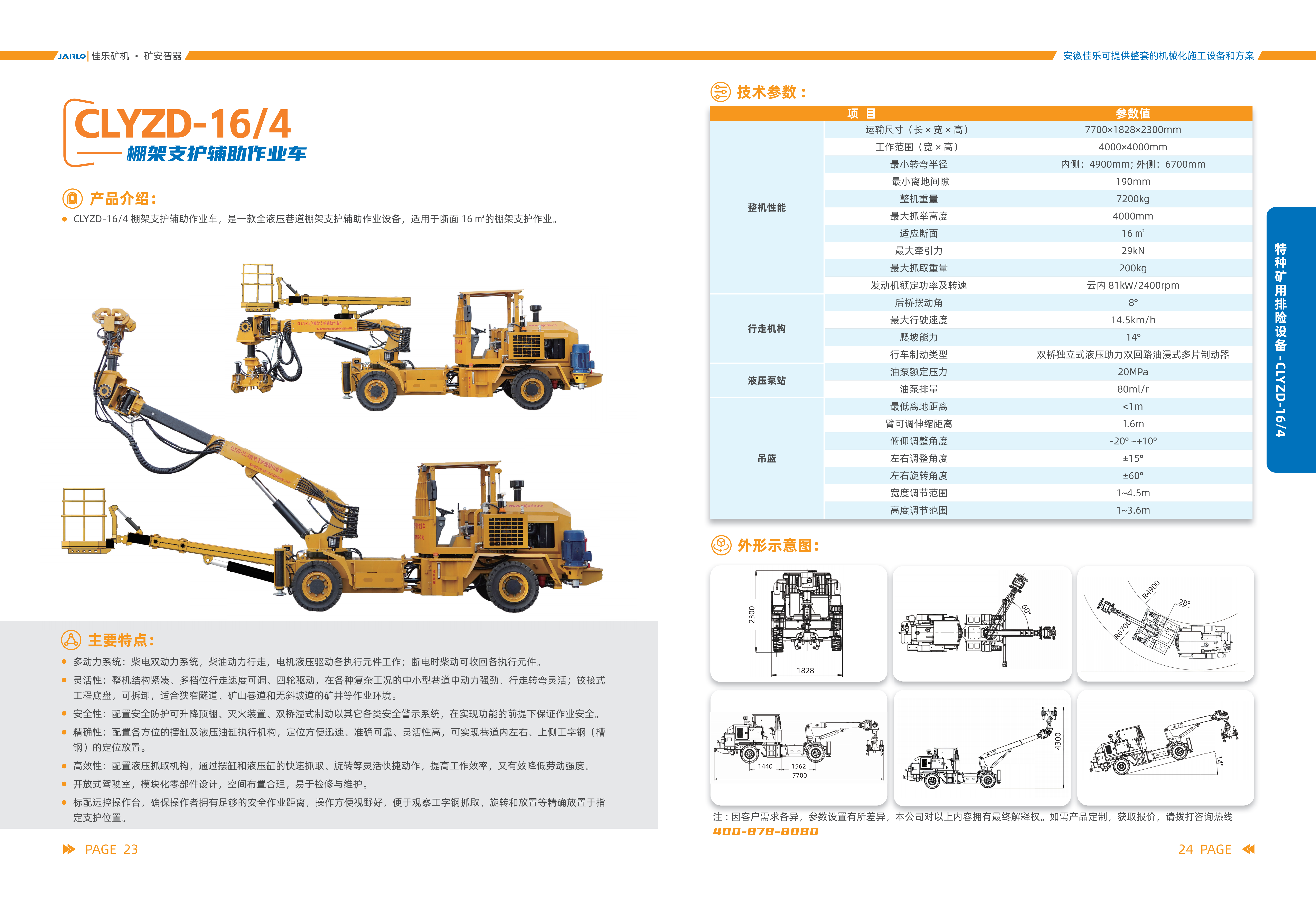 1.多動(dòng)力系統(tǒng):柴電雙動(dòng)力系統(tǒng),柴油動(dòng)力行走,電機(jī)液壓驅(qū)動(dòng)各執(zhí)行元件工作;斷電時(shí)柴動(dòng)可收回各執(zhí)行元件。